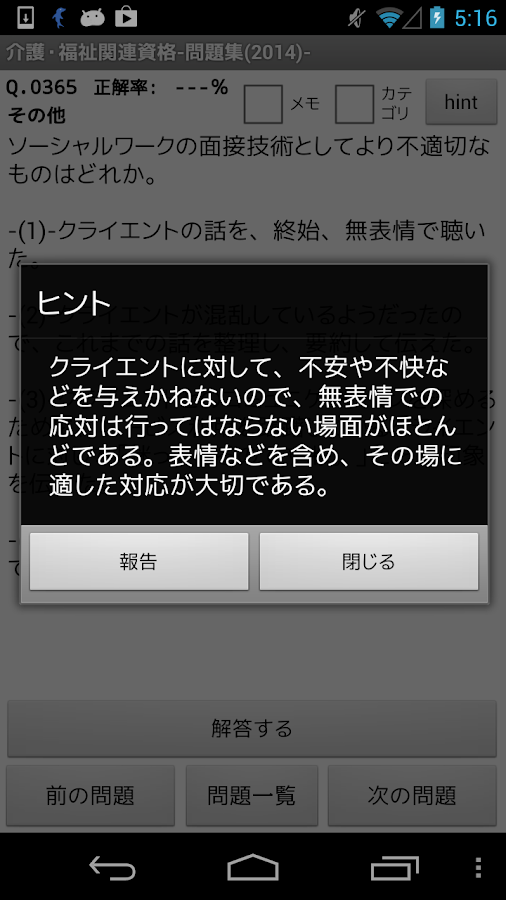 ケアマネ無料過去問題集解説付き(介護支援専門員過去問題集) 介護. ケアマネ無料過去問題集解説付き(介護支援専門員過去問題集) 2014年5月29日 [過去問題]. ケアマネ試験つぶやき(2014~) ケアマネ試験受験生の感想. 介護支援専門員(ケアマネージャー) top; つぶやき; ケアマネ試験つぶやき(2014~) ケアマネ試験受験生の感想. 介護福祉士 国試対策商品2018 特集 中央法規出版. "質の高い"介護サービスを提供するためには、専門的な知識と技術が不可欠です。 介護福祉士国家試験は、個々の介護職が. 書誌|メヂカルフレンド社. 『月刊雑誌』2014年4月号 vol.60 no4 通巻874号. 看護技術2014年four月号. 医療関連機器圧迫創傷の予防とケア 編集協力/石澤美保子.